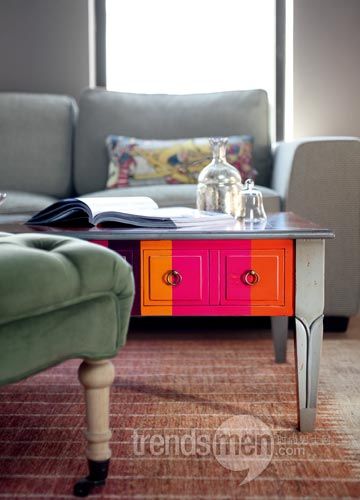 你也可以为那些老旧家具重新涂抹上绚丽的颜色,或者更换一下桌面的材质、去除掉那些家具上烦琐的线条……其实无需改变太多,这些小动作足以让你的家焕然一新。