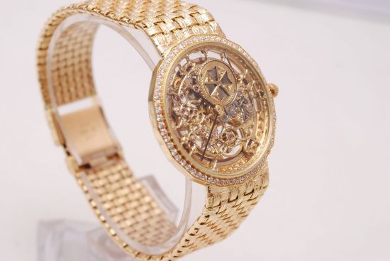 真正让人过目难忘的古董腕表,江诗丹顿这一款18K黄金镂空雕花自动上链腕表,其华丽与复古的浓郁气息渗透到每一个细节,那在手中把玩的乐趣必然令人心醉,爱表之人不要错过。