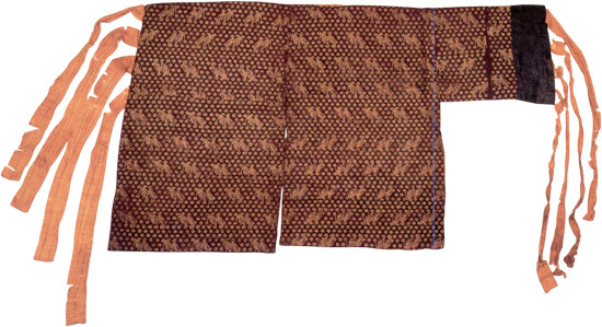 褐地朵梅鸾章金锦棉蔽膝(图6),《方言》:“蔽膝,江淮之间谓之棉,自关东西谓之蔽膝。”顾名思义,这是遮盖大腿至膝部的服饰。