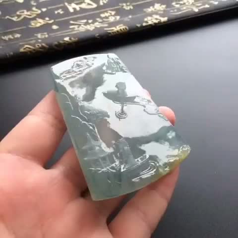 (超值推荐)冰种飘花略带黄翡山水牌挂件
