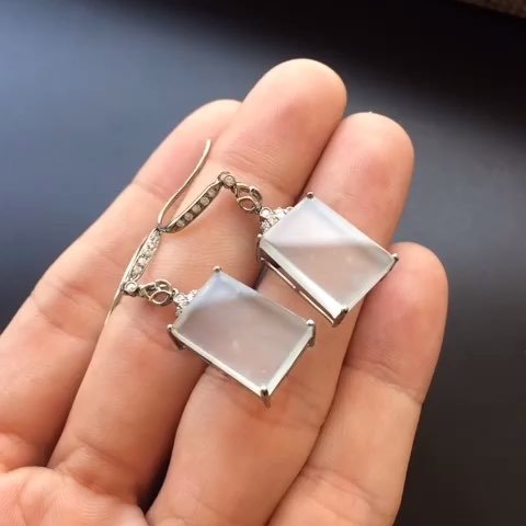 (超值推荐)玻璃种淡晴水镶白金钻石方形耳坠一对