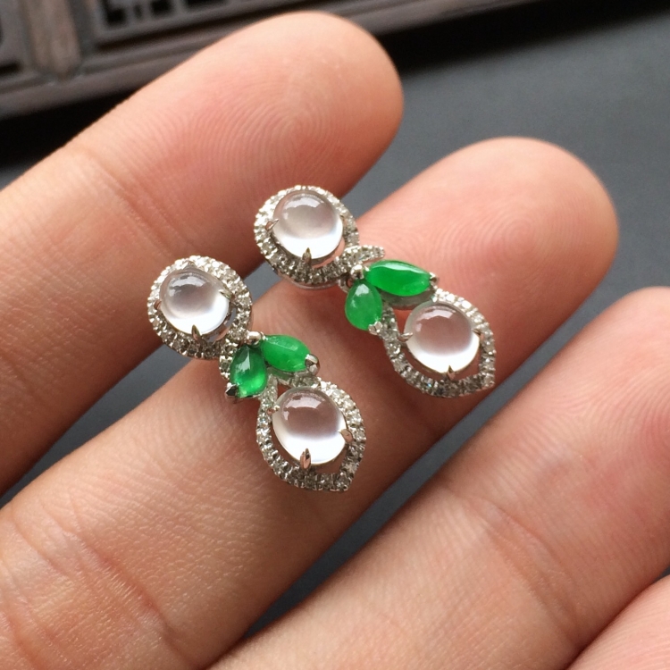 (超值推荐)冰玻种无色镶白金钻石耳坠一对