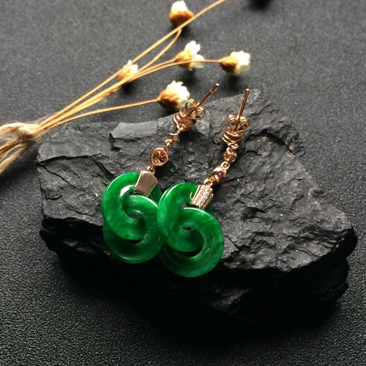 (超值推荐)镶玫瑰金钻石糯冰种阳绿平安环耳坠