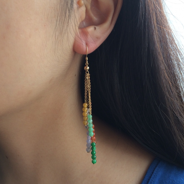 (超值推荐)糯冰种多彩镶黄18k金缤纷耳坠