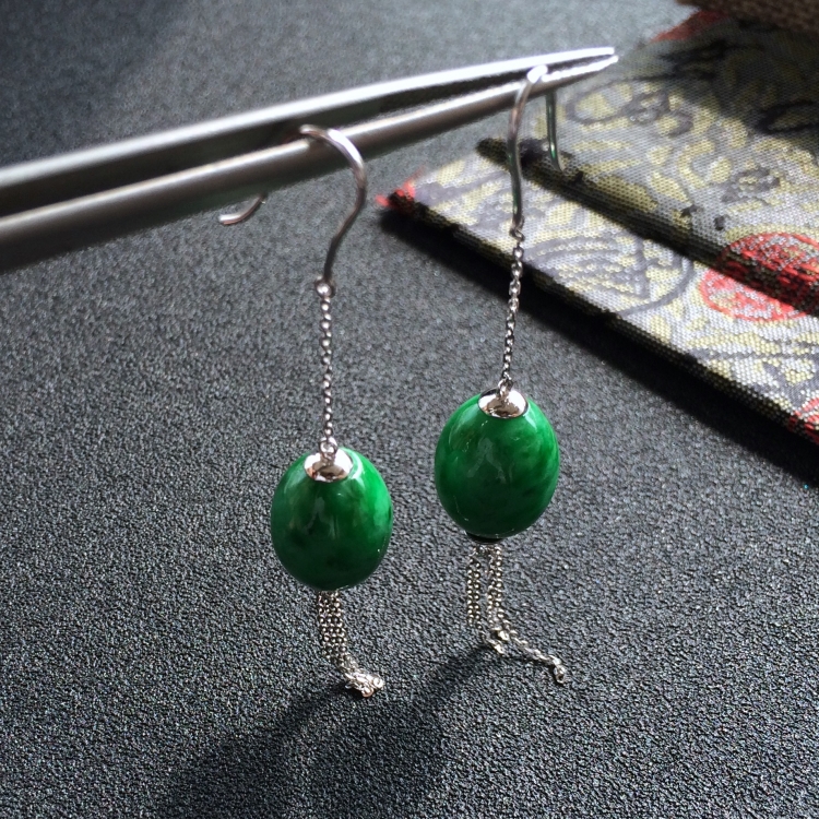 (超值推荐)糯冰种癣加绿镶白金路路通耳坠一对