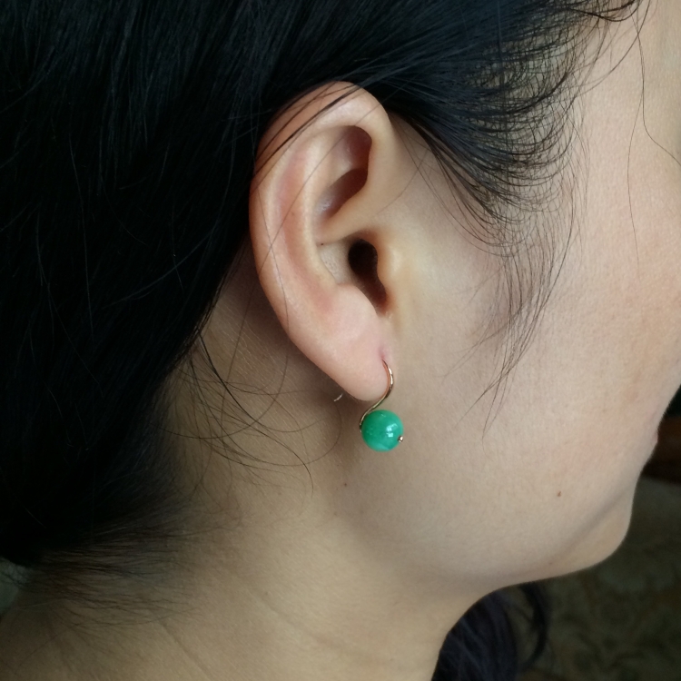 (超值推荐)镶玫瑰金糯冰种豆色转运珠耳坠