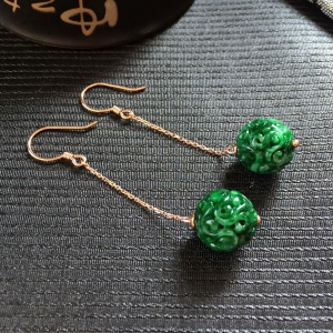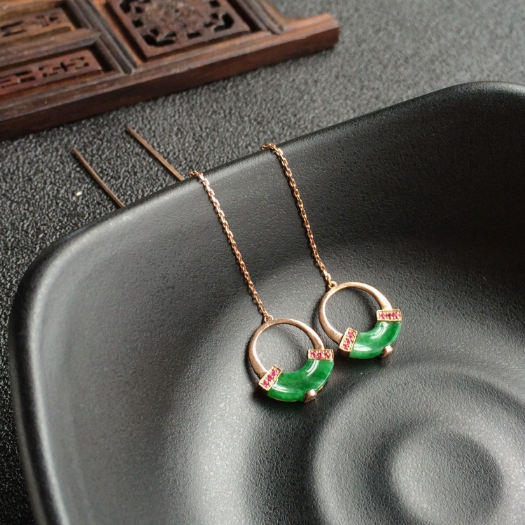 (超值推荐)糯冰种翠色镶玫瑰金耳坠