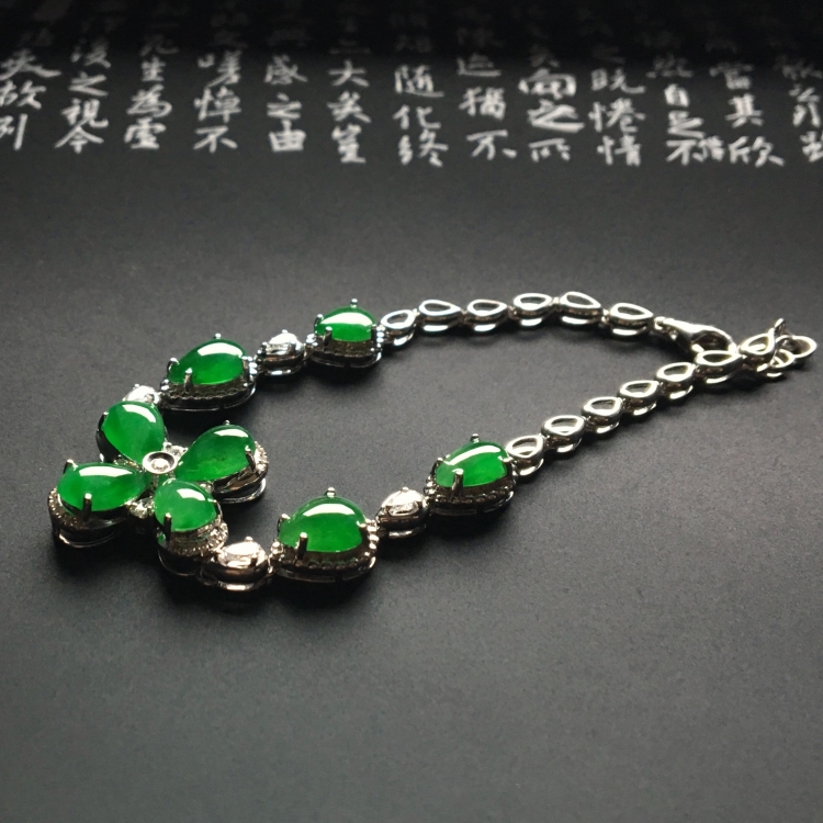 (超值推荐)镶白金钻石冰种翠色手链
